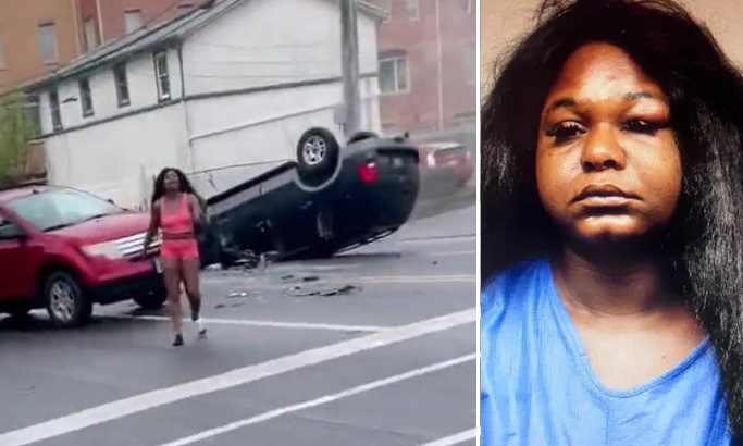 She then raced out of the gas station parking lot and hit another vehicle waiting to turn southbound at Jackson Blvd., which is when the Ford SUV she was in flipped over.